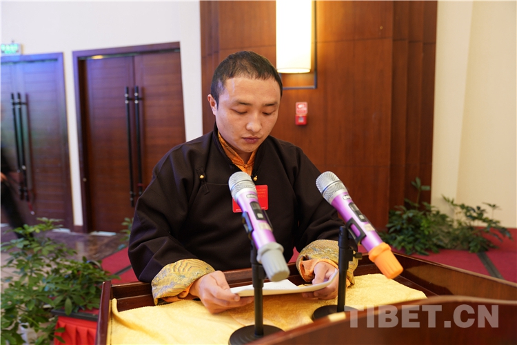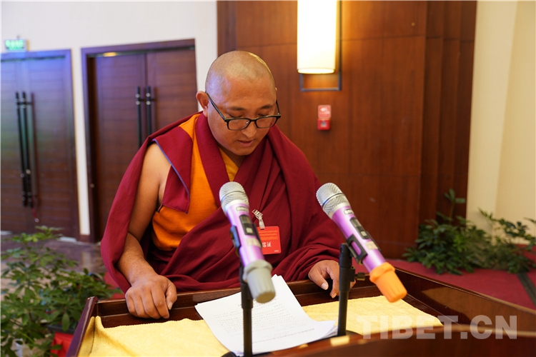 圖為努定?貢桑旺堆發(fā)言 攝影:王淑