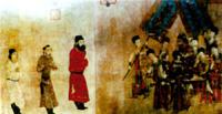 步輦圖 中坐者為唐太宗左二為吐蕃請(qǐng)婚使臣祿東贊,唐代著名畫家閻立本繪