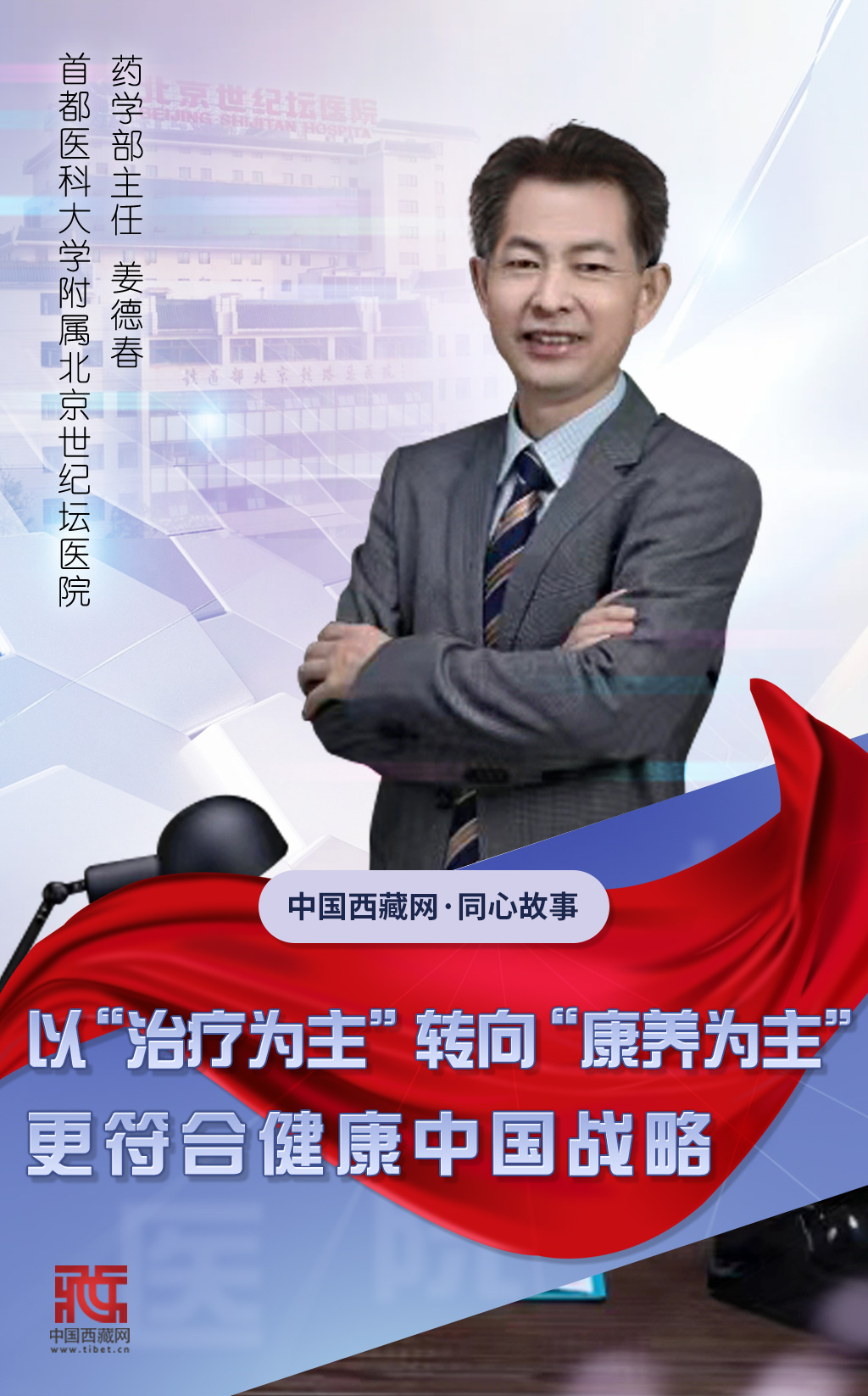姜德春認(rèn)為,我們國(guó)家實(shí)施的“健康中國(guó)”戰(zhàn)略就是要以健康為主。以前我們醫(yī)療模式是以“治療為主”,現(xiàn)在開(kāi)始從“治療為主”向“預(yù)防為主”轉(zhuǎn)變,保持健康就是一種預(yù)防的狀態(tài)。通過(guò)康養(yǎng)獲得更高水平的生活質(zhì)量,這是人民對(duì)健康的需求,也是實(shí)現(xiàn)“健康中國(guó)”戰(zhàn)略的最大目標(biāo)。作為藥師,他認(rèn)為從“治療為主”轉(zhuǎn)向“康養(yǎng)為主”是符合時(shí)代發(fā)展,實(shí)現(xiàn)健康中國(guó)的一個(gè)非常重要的舉措,意義深遠(yuǎn)。(中國(guó)西藏網(wǎng) 記者/趙振宇 曹美晴 海報(bào)設(shè)計(jì)/郝蕊)