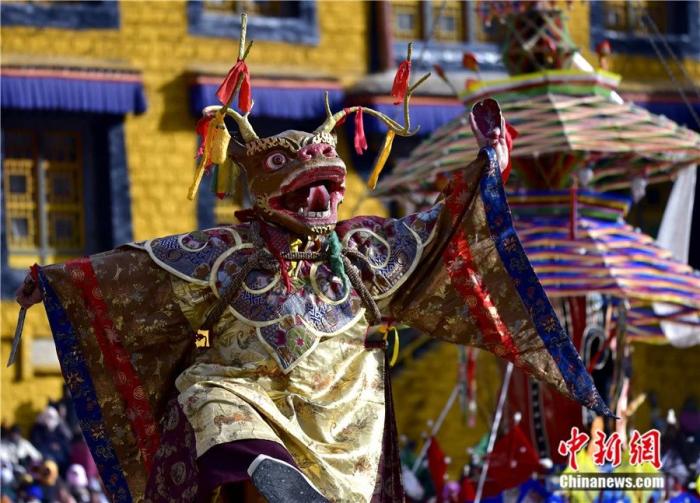 2025年2月27日是藏歷十二月二十九,西藏拉薩楚布寺舉行“羌姆”(跳神)活動,以驅(qū)邪送崇、祈福禳災,同時表達對藏歷木蛇新年的美好祈愿。中新社記者 李林 攝
