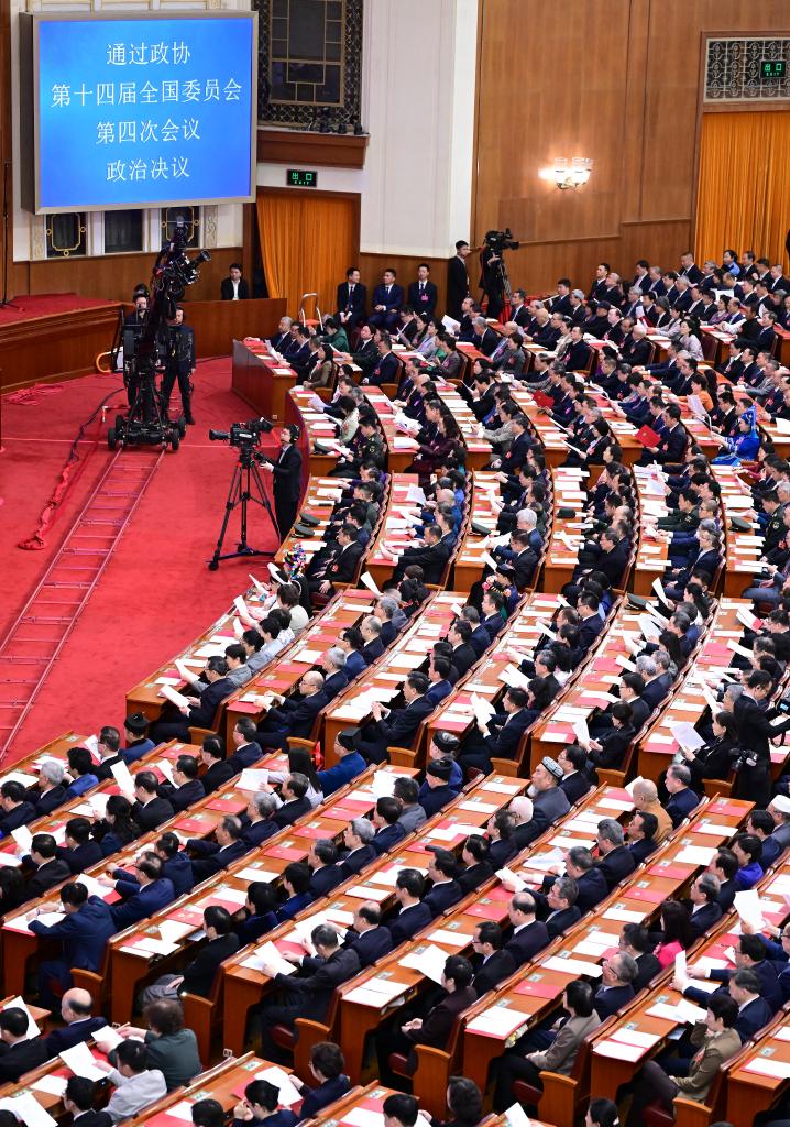 3月11日,全國政協(xié)十四屆四次會議在北京人民大會堂舉行閉幕會。新華社記者 申宏 攝